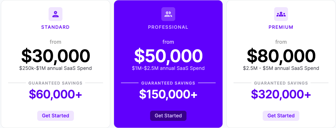 Pricing is based on your annual SaaS spend using the data that comes out of your accounting system. The larger your company, the more SaaS you’ll have, and the higher your SaaS spend.